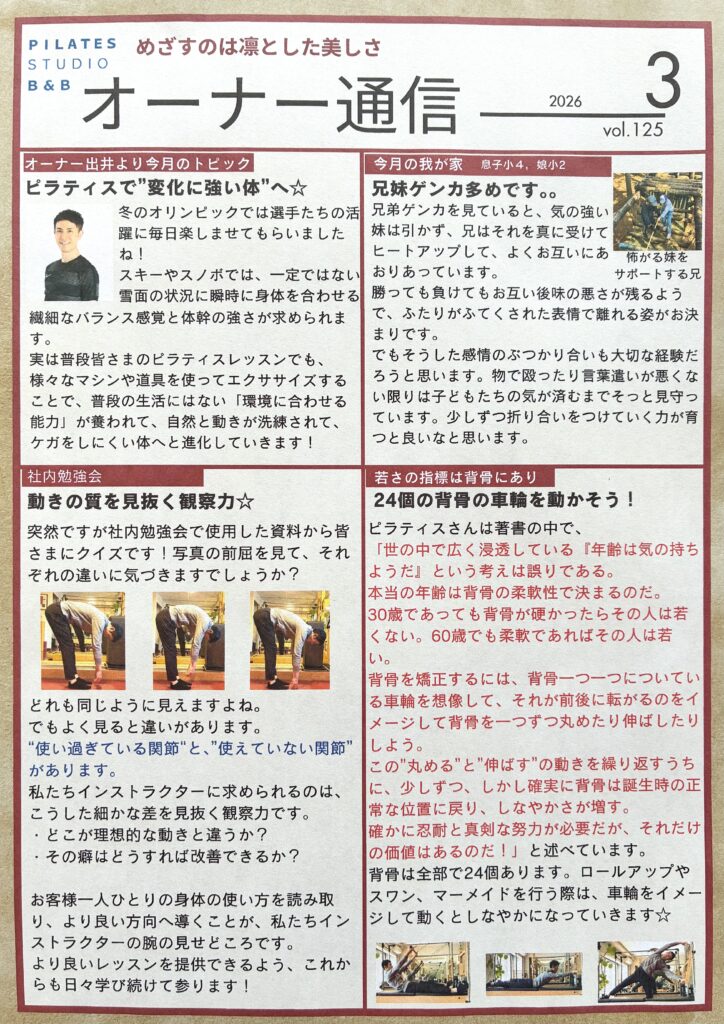 おはようございます😃 オーナーの出井です💡 今日から3月ですね! オリンピックも終わり 次はWBCが楽しみですね⚾️ 実は、プロ野球選手に ピラティス指導をして […]