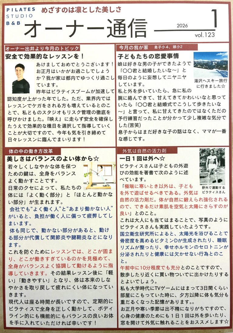 もちろん日常生活も健やかに怪我をしない日々が送れます。このピラティスの素晴らしさを皆さんにお伝えし、一緒に楽しんでいきたいと思います。